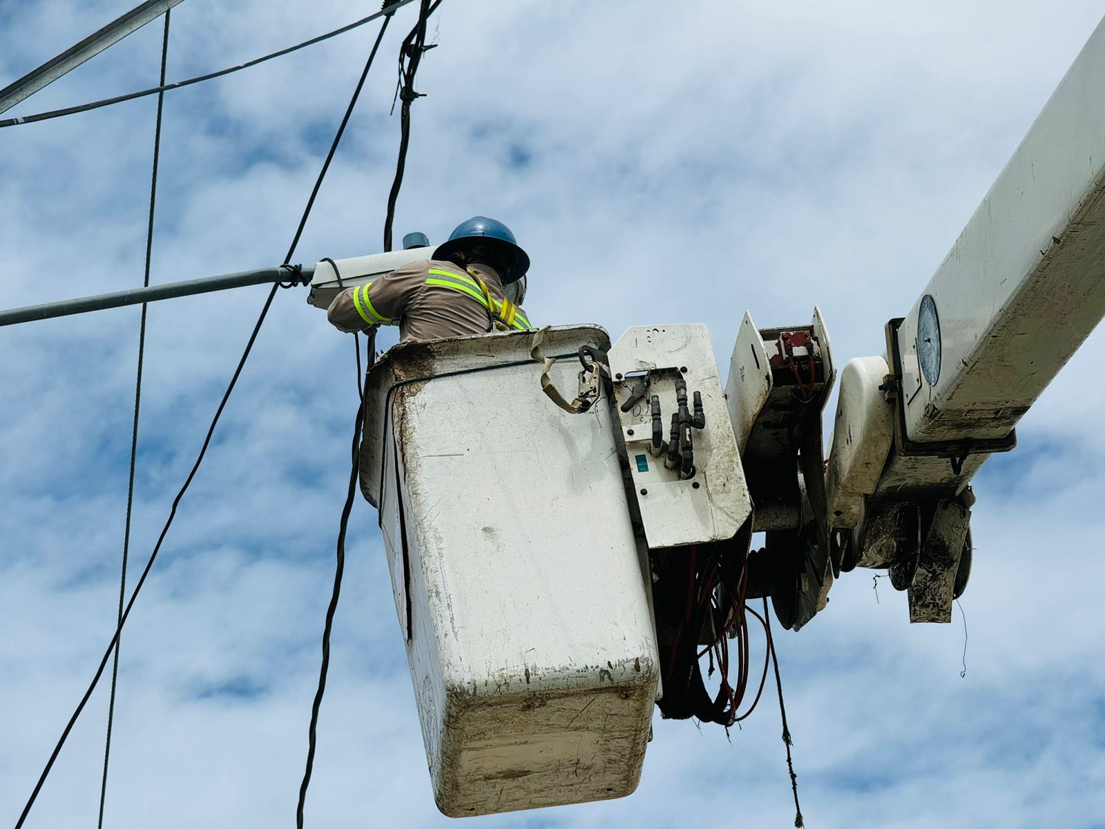 Las labores se realizan utilizando grúas, mientras las brigadas proceden a cambiar las bombillas, o a resolver otros problemas que impiden el buen funcionamiento del sistema de electricidad, en parques y plazas públicas.